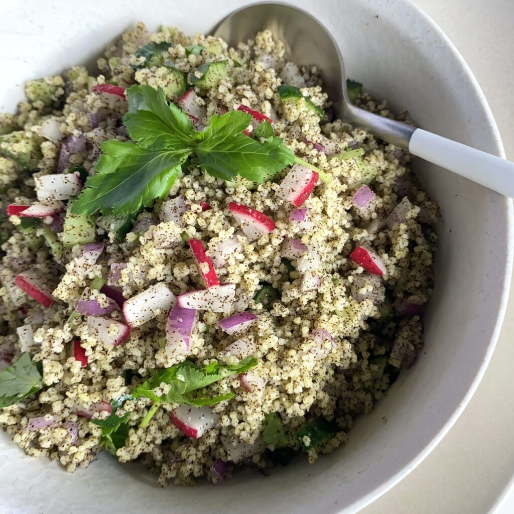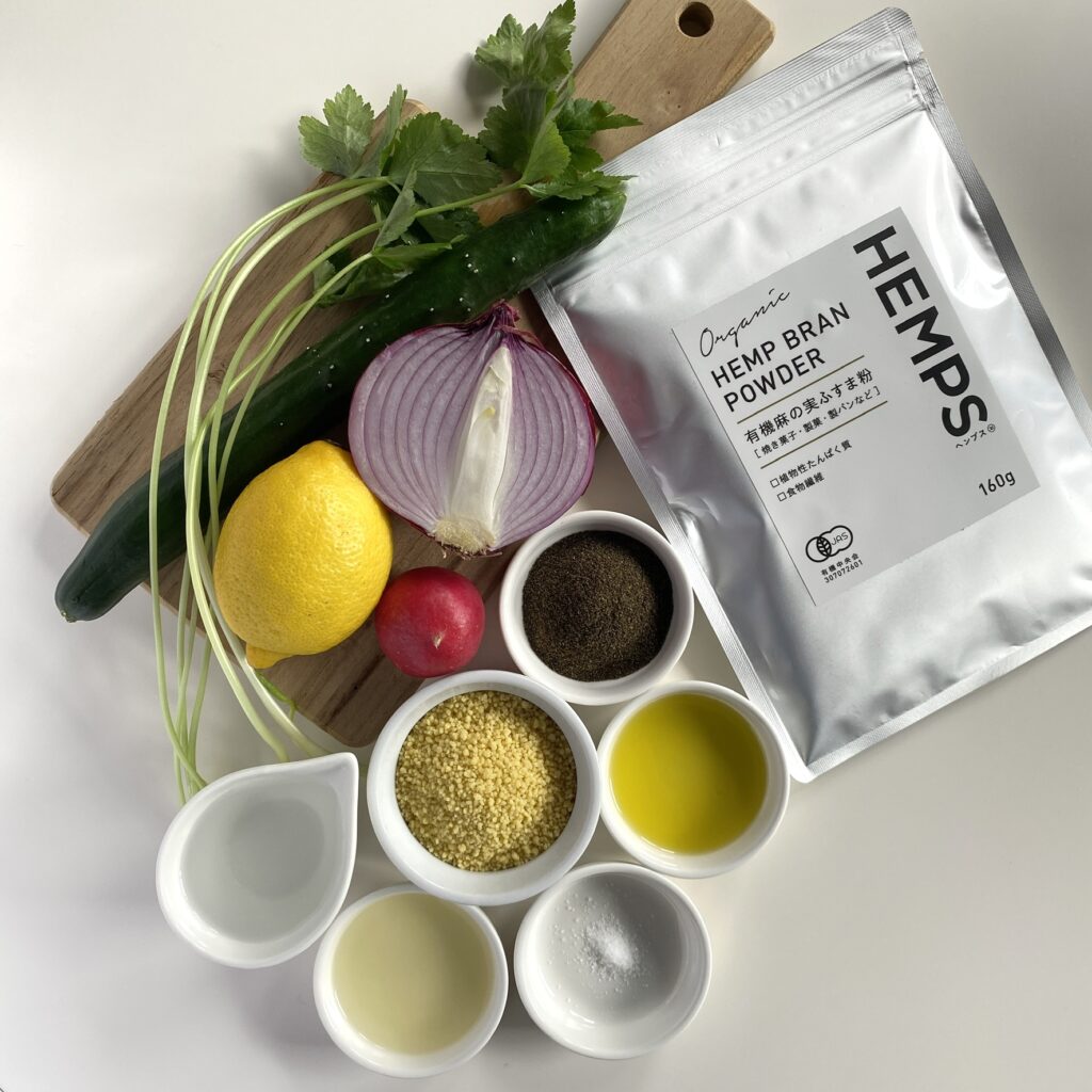今回はクスクスに「有機ヘンプブランパウダー(麻の実ふすま粉)」をプラスすることで栄養価が上がる、ヘルシーで手軽なレシピをご紹介します。